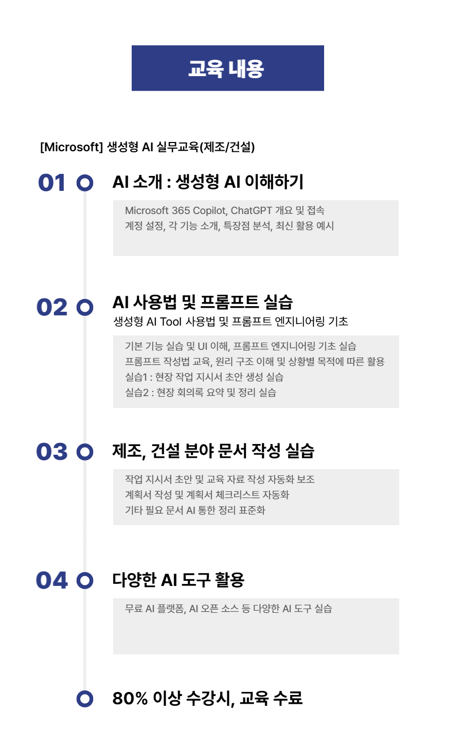 (오프라인 교육) [Microsoft] 생성형 AI 실무교육(제조/건설) 과정정보
